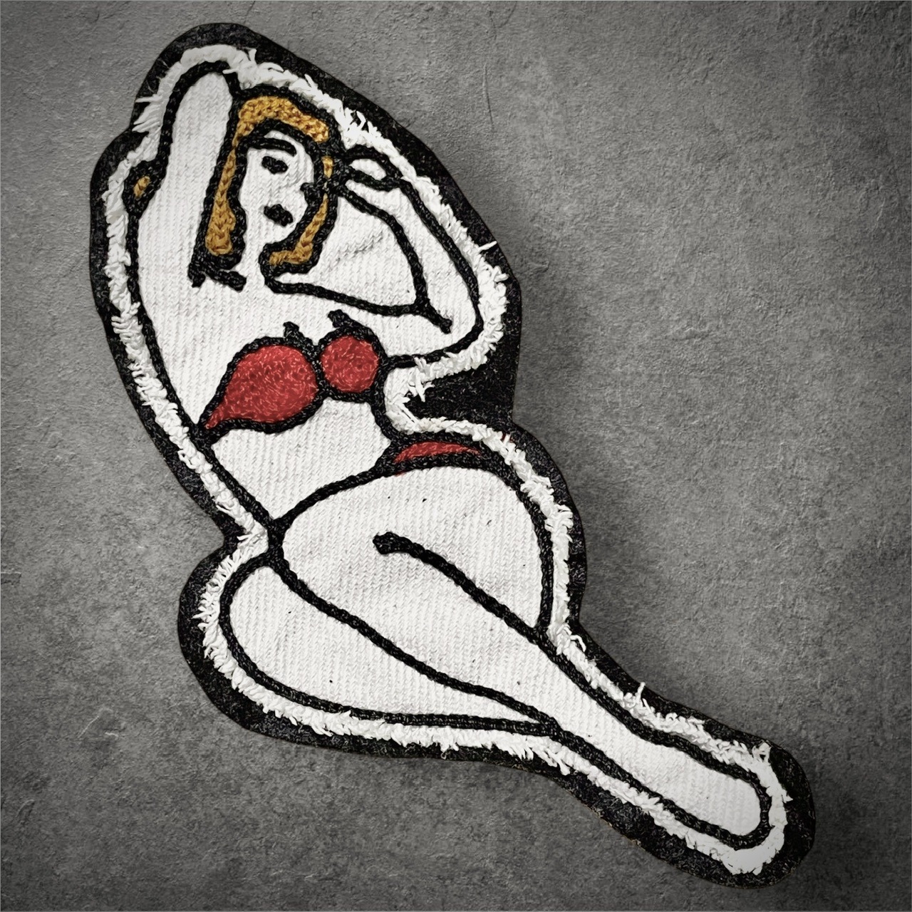 女性のデザインのパッチは印象強いので、大きすぎても…ということでサイズの調整に悩みました😩