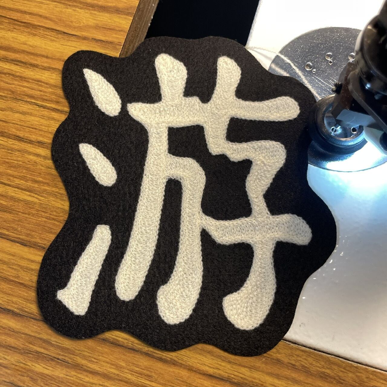 ハンドル刺繍ミシンを使用しての漢字フェルトパッチのオーダーを頂きました。
